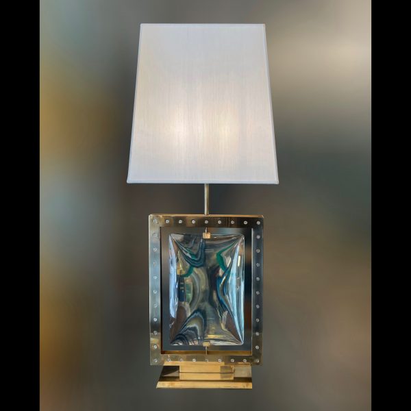 Pair of XXI C. brass table lamps by R.G.Rida with vintage glass panel, signed